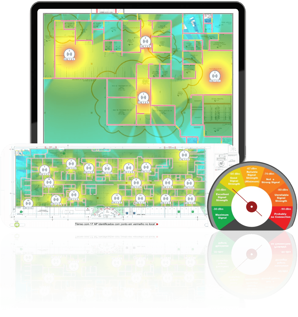 Ofertamos o planejamento e o diagnóstico do seu ambiente de rede sem fio mesmo antes de ele existir ou com ele em funcionamento, otimizando e fornecendo resultados reais.